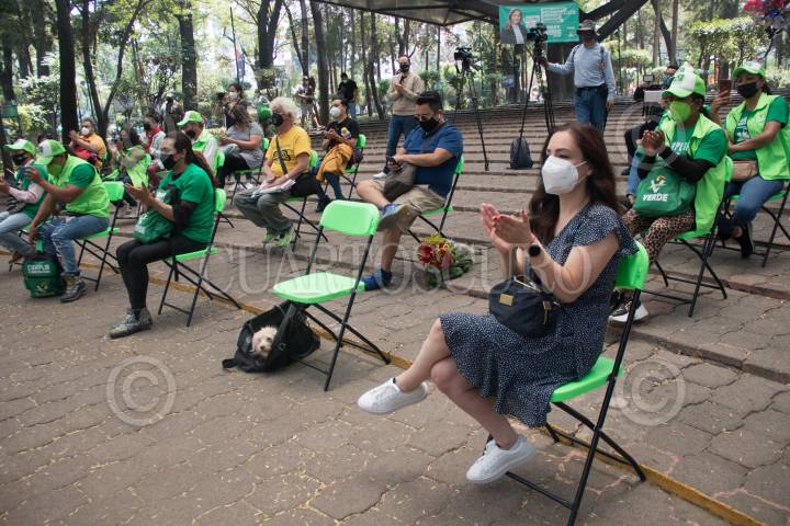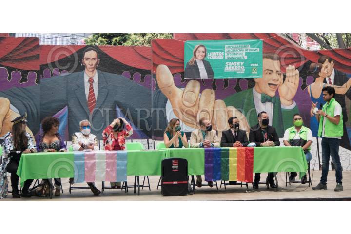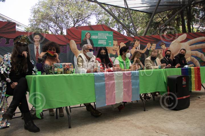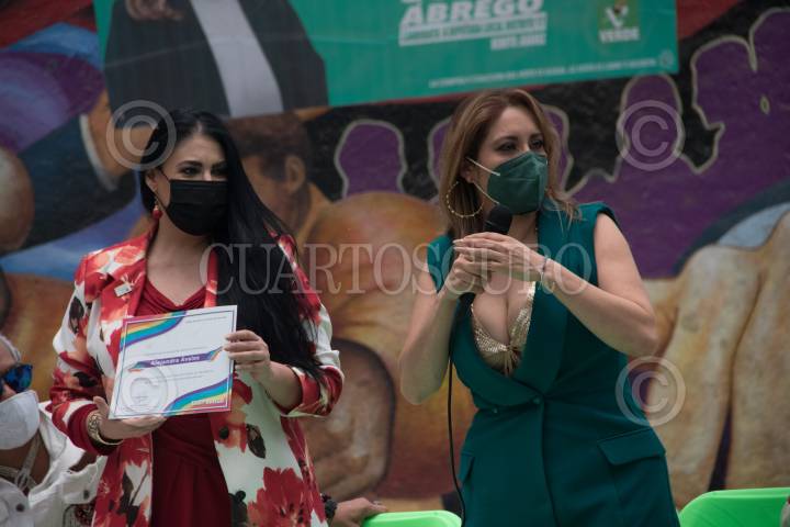 Sugey Ábrego candidata al Congreso Local de la Ciudad, por el PVEM, en acto de campaña con la comunidad LGBT