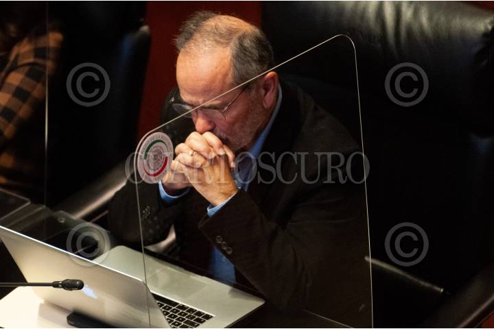 Ricardo Monreal, coordinador de los senadores en el Senado, ofrece una conferencia de prensa.