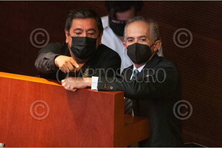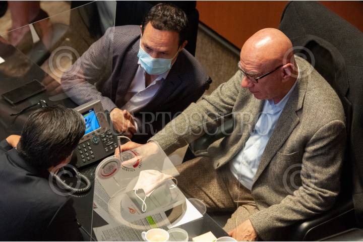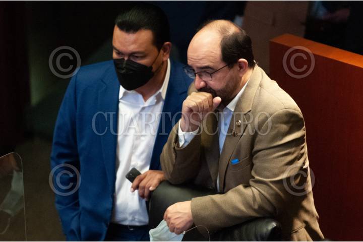 Clemente Castañeda y Dante Delgado, integrantes del grupo parlamentario de Movimiento Ciudadano, durante la sesión en la Cámara de Senadores.