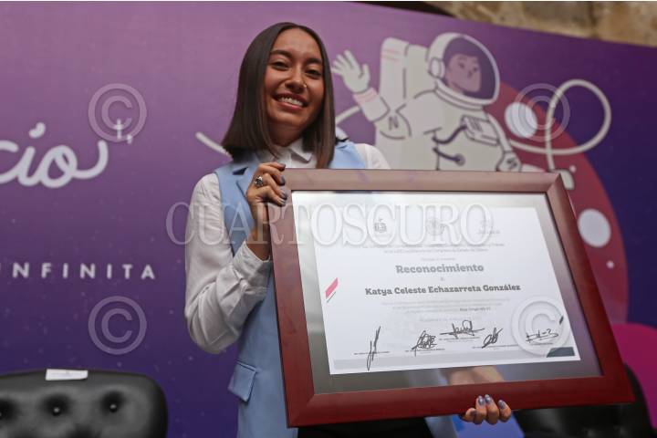 Katya Echazarreta González, durante la entrega de un reconocimiento en el Congreso del Estado de Jalisco, por su labor en la NASA.