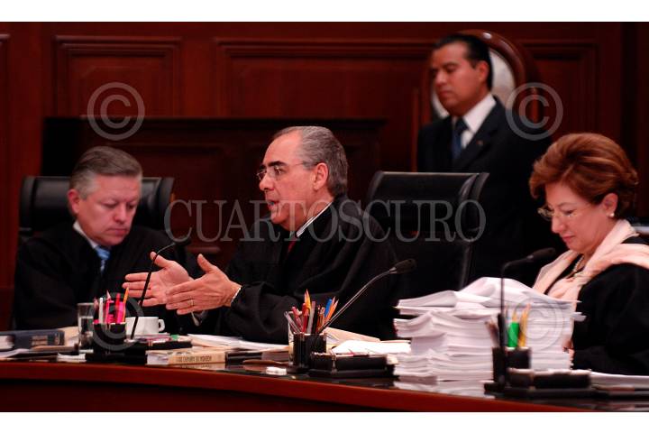 MÉXICO, D.F., 28SEPTIEMBRE2011.- Los ministros votaron de la siguiente forma Jorge Mario Pardo Rebolledo, en contra, y a favor Arturo Zaldivar Lelo de Larrea, y Juan N. Silva Meza, en el proyecto que promovía invalidar la ley que defiende la vida desde su concepción promovida en Baja California. Durante la sesión que se discutió este tema la votación se definió con 7 votos a favor y 4 en contra del proyecto, lo que la deja intacta ya que se necesitaba 8 votos para echarla para atrás. FOTO: MOISÉS PABLO/CUARTOSCURO.COM