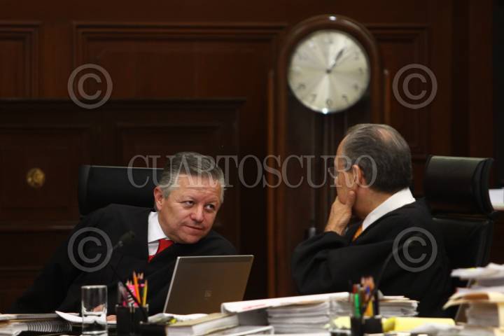 MÉXICO, D.F., 22MARZO2011.- Arturo Zaldivar Lelo de Larrea y José Fernando Franco González Salas, Ministros de la Suprema Corte de Justicia de la Nación (SCJN), durante la sesión del pleno. FOTO: PAULETTE GONZÁLEZ/CUARTOSCURO.COM