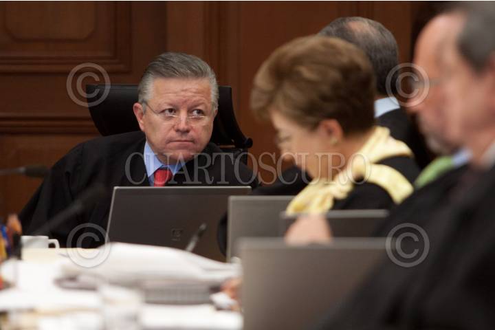 MÉXICO, D.F., 29SEPTIEMBRE2011.- El ministro Arturo Zaldivar Lelo de Larrea, reiteró su votación a favor del proyecto que pretendía invalidar la ley que protege la vida desde la concepción de la Constitución de San Luis Potosí. Ante una mayoría insuficiente de siete ministros que se pronunciaron por invalidar el artículo 16 de la Constitución potosina, la acción de inconstitucionalidad promovida por una minoría de la legislatura local fue desestimada. La minoría integrada por los ministros Jorge Pardo, Guillermo Ortiz, Salvador Aguirre y Margarita Luna, privó al bloque mayoritario del octavo voto necesario para una declaración de invalidez, como sucedió en el caso de Baja California. FOTO: MOISÉS PABLO/CUARTOSCURO.COM