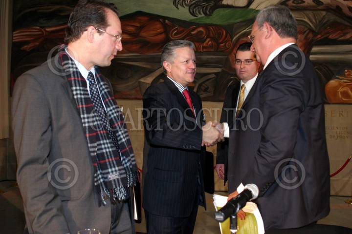 MEXICO, D.F. 11FEBRERO2005.- Jaime Araujo Rentería, presidente de la Suprema Corte de Justicia de Colombia, Arturo Zaldivar Lelo de Larrea, director de la Escuela Libre de Derecho, Rafael Coello, director de Asuntos Jurídicos de Corte y Juan N. Silva Meza, ministro; durante la clausura del foro de análisis del Décimo Aniversario de la Reestructuración de la Suprema Corte Justicia de la Nación. FOTO: Moisés Pablo/CUARTOSCURO.COM