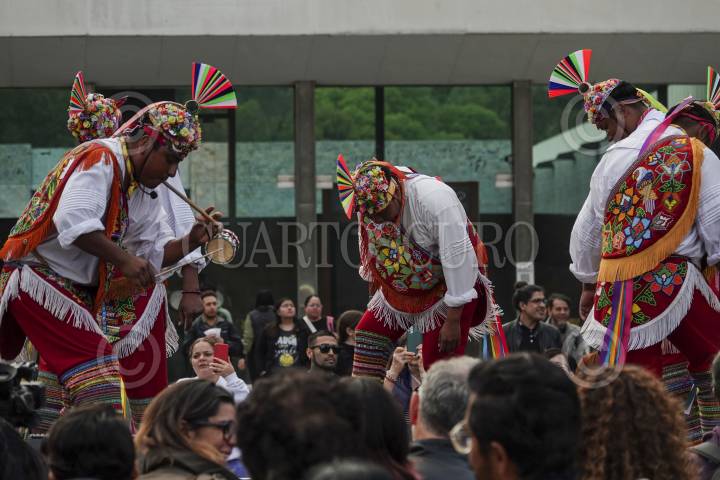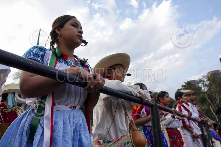 CIUDAD DE MÉXICO, 21FEBRERO2025.- Integrantes de diversos grupos originarios de la República Mexicana se dieron cita en la explanada del Museo Nacional de Antropología e Historia para conmemorar el Día Internacional de las Lenguas Maternas. A través de la iniciativa “Lenguabuelas. La Ancestralidad tiene origen”, la secretaría de Cultura y el INAH buscan honrar y subrayar la importancia de la mujer y de la comunidad en el fortalecimiento de los lazos culturales a través de la lengua, así en su preservación y herencia de generación en generación. FOTO: GALO CAÑAS/CUARTOSCURO.COM