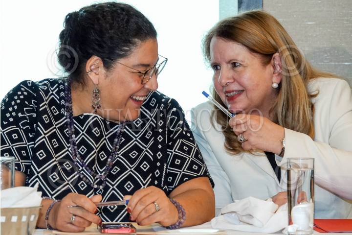 CIUDAD DE MÉXICO, 20NOVIEMBRE2024.- Las ministras de la Suprema Corte de Justicia de la Nación (SCJN): Lenia Batres Guadarrama y Loretta Ortíz Ahlf conversan durante la mesa de diálogo “Ventajas de la Reforma Judicial” con invitados e integrantes del Harvard Club México en el Piso 51 de la Torre Mayor. FOTO: GALO CAÑAS/CUARTOSCURO.COM