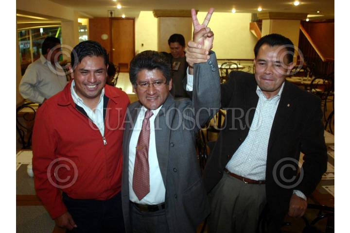 OAXACA, OAXACA, 26FEBRERO2009.- Lenin López Nelio, Francisco Martinez Neri y el senador, Rene Arce; se reunieron este día con la bancada Federal del Partido de la Revolución Democrática (PRD), donde se reitero el apoyo a Martinez Neri como proximo candidato a la diputación del distrito 8 de la capital. FOTO: MAX NÚÑEZ/CUARTOSCURO.COM