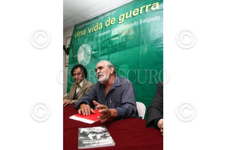 MÉXICO, D.F., 26NOVIEMBRE2009.- El fotoperiodista Armanmdo Lenin Salgado acompañado de Carlos Padilla director de la revista Zócalo. Federico Campbell Peña periodista de canal 11 y Rogaciano Méndez del Sindicato de Redactores de Prensa presentaron la reedición del libro Una vida de Guerra, donde narra su experiencia como fotógrafo en la guerrilla en Colombia con el ELN, su relación con el guerrillero Genaro Vázquez Rojas y la forma en que logró las fotos de los halcones el 10 de junio de 1971 en la Ribera de San Cosme. FOTO: SAÚL LÓPEZ/CUARTOSCURO.COM
