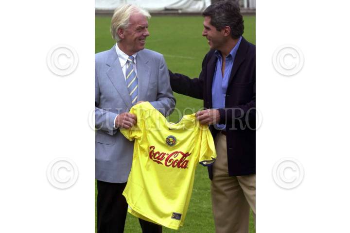 10 ABRIL 2025.- Esta mañana se confirmó el fallecimiento del entrenador neerlandés Leo Beenhakker a los 82 años. Reconocido por su paso por el Real Madrid, la selección de Países Bajos y el Club América. En la foto de Archivo del 12 de junio de 2003, el entrenador fue presentado como técnico del equipo azulcrema al lado de Andrés Pérez Teuffer. FOTO: Juan Pablo Zamora/CUARTOSCURO.COM