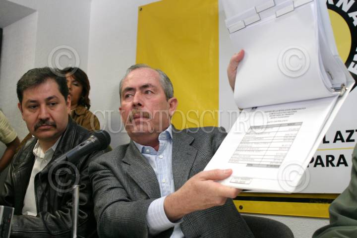 MEXICO, D.F., 12OCTUBRE2005.- Gerardo Fernández Noroña, Vocero del PRD y Leonal Cota Montaño, presidente nacional del PRD, presentaron la relación de gastos de la precampaña de su precandidato Andrés Manuel López Obrador. FOTO: Moisés Pablo/CUARTOSCURO.COM