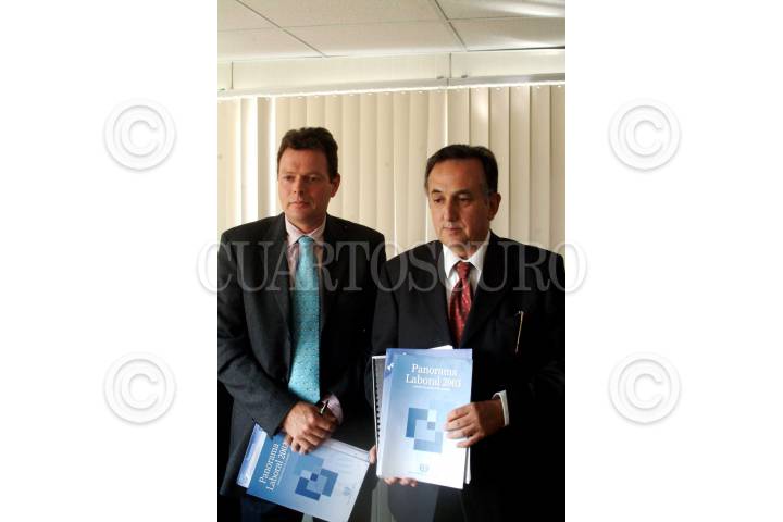 MEXDF07ENE2004.- Leonard Mertens consultor de OIT y Guillermo Miranda Presidente de la OIT México, presentarón las estadisticas del Panorama Laboral 2003, esta mañana en conferencia de prensa. FOTO: Ricardo Hernández/CUARTOSCURO.COM