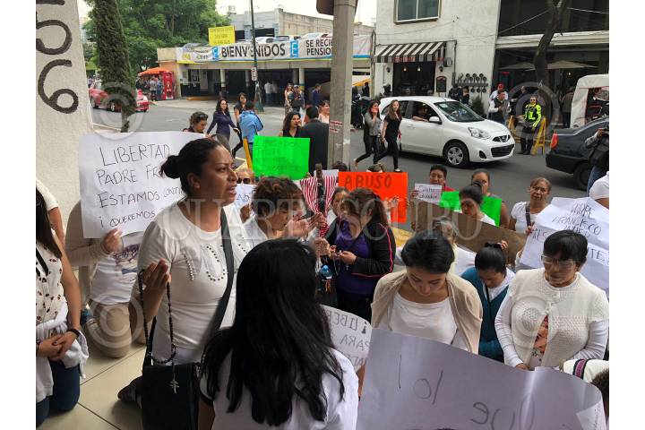 CIUDAD DE MÉXICO, 24JUNIO2019.- En las salas de oralidad del Tribunal Superior de Justicia de la Ciudad de México, ubicadas en la colonia Doctores, se realizó la audiencia en donde se le vínculo a proceso al padre Francisco Javier Bautista por su probable responsabilidad en el asesinato del joven Leonardo Avendaño. Durante la diligencia feligreses de la iglesia "Cristo Salvador" se manifestaron para apoyar al prelado, pidiendo su libertad ya que ellos aseguran es inocente. FOTO: ARMANDO MONROY /CUARTOSCURO.COM