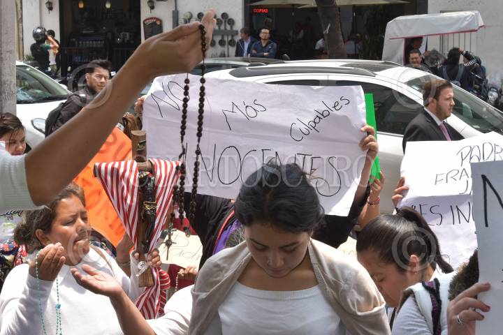 CIUDAD DE MÉXICO, 20JUNIO2019.- Seguidores del Padre Francisco Javier "N", quien esta señalado por la procuraduría capitalina de haber participado en el asesinato del joven universitario Jorge Avendaño se manifestaron rezando el rosario afuera de la sede de la PGJCDMX, para apoyarlo y pedir que la dependencia no fabrique culpables, por la mañana la procuradora Ernestina Godoy dio a conocer su detención y detalles del caso que lo implican. FOTO: ARMANDO MONROY /CUARTOSCURO.COM