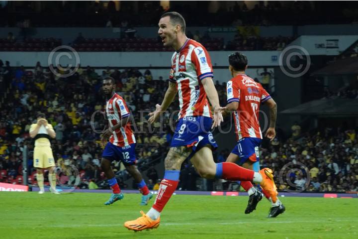 Leonardo Bonatini, delantero del Atlético de San Luis, celebra un gol anotado a favor de su equipo durante los cuartos de final contra las Águilas del América