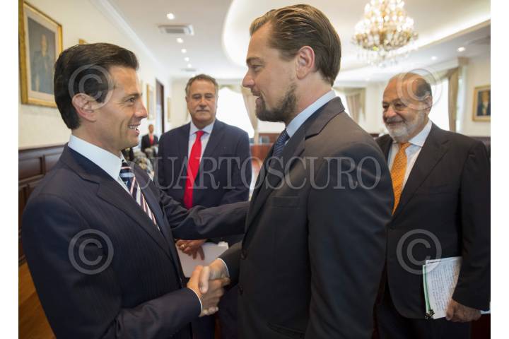 CIUDAD DE MÉXICO, 07JUNIO2017.- El Presidente Enrique Peña Nieto encabezó hoy una reunión en la Residencia Oficial de Los Pinos con Leonardo DiCaprio y Carlos Slim Helú, durante la cual se firmó un Memorándum de Entendimiento entre el Gobierno de la República y las fundaciones que ambos encabezan, en el que se acordó adquirir mayores compromisos para proteger los ecosistemas marinos en el Golfo de California, y en especial a la Vaquita Marina. Los esfuerzos en ese sentido serán respaldados por la Fundación Leonardo DiCaprio y la Fundación Carlos Slim, a fin de lograr los objetivos. FOTO: PRESIDENCIA /CUARTOSCURO.COM