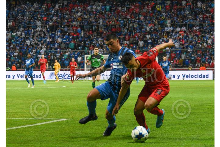 Leonardo Fernández medio de los Diablos del Toluca ante Erik Lira medio de la Máquina Cementera del Cruz Azul quienes lograron la victoria en el estadio Nemesio Diez, derrotando al Club Toluca con un marcador final 4-1.