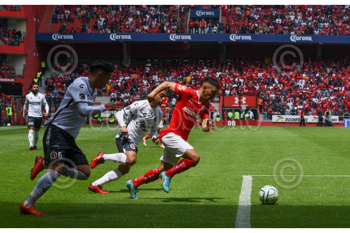 Leonardo Fernández medio de los Diablos del Toluca durante el encuentro ante Xolos de Tijuana en el estadio Nemesio Diez.