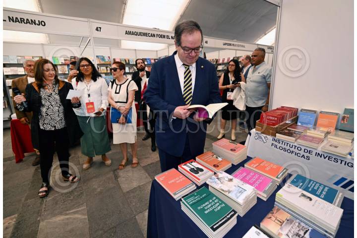 CIUDAD DE MÉXICO, 27AGOSTO2024.- Leonardo Lomelí Vanegas, rector de la Universidad Nacional Autónoma de México (UNAM), durante el recorrido de la inauguración de la VI Feria Internacional del Libro de las Universitarias y los Universitarios realizada en el Centro de Exposiciones y Congresos UNAM. FOTO: GRACIELA LÓPEZ /CUARTOSCURO.COM