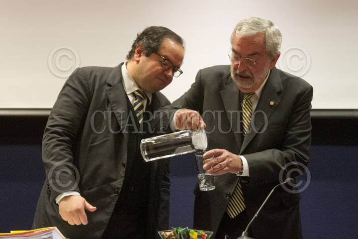 CIUDAD DE MÉXICO, 15NOVIEMBRE2018.- Leonardo Lomelí Vanegas, secretario general de la UNAM, y Enrique Graue Wiecher, rector de la UNAM, durante los trabajos de la sesión del Consejo Universitario, en la Antigua Escuela de Medicina. FOTO: MOISÉS PABLO /CUARTOSCURO.COM