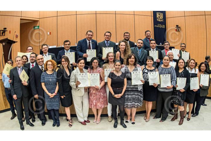 CIUDAD DE MÉXICO, 06JUNIO2019.- En siete años, la Universidad Nacional ha aumentado de forma sensible la calidad en la preparación del personal académico administrativo del Bachillerato, a través del Diplomado para la Formación del Personal Académico Administrativo del Bachillerato que a la fecha suma 230 egresados. Así lo destacó Leonardo Lomelí Vanegas, secretario general de la UNAM, al entregar los diplomas a los 31 egresados de la séptima generación que incluye a 128 funcionarios de la Escuela Nacional Preparatoria (ENP), 79 de la Escuela Nacional del Colegio de Ciencias y Humanidades (CCH), tres del Bachillerato a Distancia y 20 del Sistema Incorporado, de los cuales poco más del 80% ya desarrollaba alguna función directiva al momento de ingresar. Al evento asistieron también 14 directores de los planteles del Bachillerato Universitario, de sus direcciones generales, del Sistema Incorporado y del Bachillerato a Distancia, así como participantes de la séptima y octava generación. FOTO: UNAM /CUARTOSCURO.COM