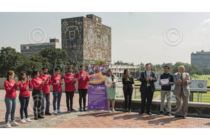 CIUDAD DE MÉXICO, 25SEPTIEMBRE2019.- Leonardo Lomelí Vanegas, secretario general de la UNAM, entregó la constancia a Eduardo Pérez Jiménez, estudiante de la Facultad de Filosofía y Letras, quien fue reconocido como el visitante 100 mil del “Programa de Visitas Guiadas al Campus Central de Ciudad Universitaria”. FOTO: UNAM /CUARTOSCURO.COM
