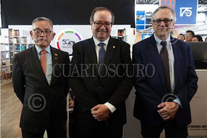CIUDAD DE MÉXICO, 27AGOSTO2024.- José Antonio de los Reyes Heredia, rector de la Universidad Autónoma de México (UAM); Leonardo Lomelí Vanegas, rector de la Universidad Nacional Autónoma de México (UNAM), y Rodrigo Arim, rector de la Universidad de la República de Uruguay (UDELAR), durante la inauguración de la VI Feria Internacional del Libro de las Universitarias y los Universitarios realizada en el Centro de Exposiciones y Congresos UNAM. FOTO: GRACIELA LÓPEZ /CUARTOSCURO.COM
