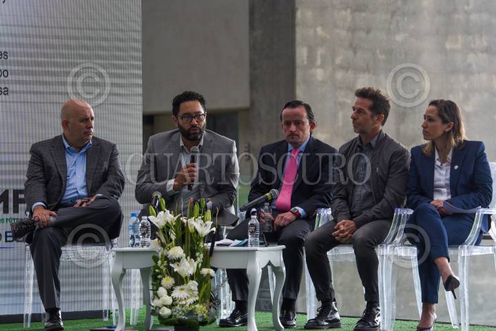 Mikel Arriola Peñalosa, presidente de la Liga BBVA MX, Juan Carlos Rodríguez, Comisionado Presidente de la FMF, Leonardo Valdez Director de Capital Humano FEMEXFUT, Chris Gruenberg abogado y Mariana Gutiérrez Directora de la Liga MX Femenil durante la presentación del Protocolo Modelo de la FMF, Liga MX y Clubes afiliados para Prevenir y Sancionar el Acoso y Hostigamiento Sexual y otras formas de discriminación en el ámbito laboral y deportivo del fútbol mexicano.