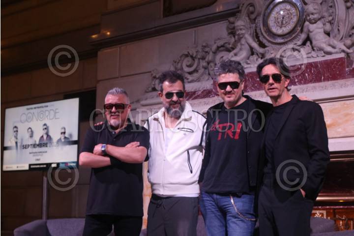 CIUDAD DE MÉXICO, 21JULIO2025.- Mauricio Clavería (baterista), Jonás González (guitarrista), Poncho Toledo (bajista) y Leonardo de Lozanne, (vocalista), integrantes de la banda "Los Concorde", ofrecieron una conferencia de prensa en el Teatro Metropolitán, en la que anunciaron su próxima presentación el 11 de septiembre en este recinto. FOTO: GRACIELA LÓPEZ/CUARTOSCURO.COM