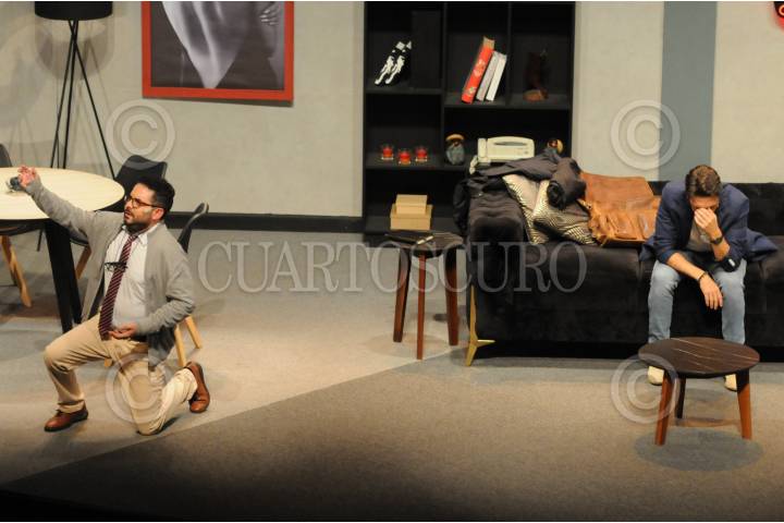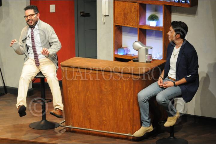 Escena de La Obra, protagonizada por José Eduardo Derbéz y Leonardo de Lozanne.