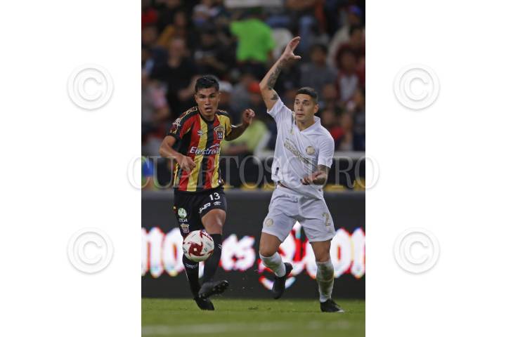 GUADALAJARA, JALISCO. 07JUNIO2025.- Carlos Fierro jugador de Leones Negros disputa el balón con el contrario de Tapatío Diego Delgadillo, esto en partido correspondiente al Campeón de Campeones de la Liga BBVA Expansión MX, que se lleva a cabo en el Estadio Jalisco, entre los Leones Negros de la Universidad de Guadalajara y el Club Tapatío, el marcador al momento es 1-0, a favor del equipo de casa. FOTO: FERNANDO CARRANZA GARCIA / CUARTOSCURO.COM