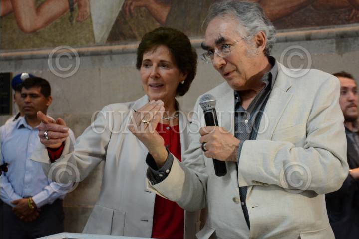 CIUDAD DE MÉXICO, 06ABRIL2017.- María Cristina García Cepeda, Secretaría de Cultura Federa,; Gabriel Weisz, Presidente de la Fundación Leonora Carrington, inauguraron la exposición “100 años de una artista: Leonora Carrington” en la Biblioteca de México, dicha exposición además contará con coloquios, talleres y conferencias. FOTO: MARIO JASSO /CUARTOSCURO.COM