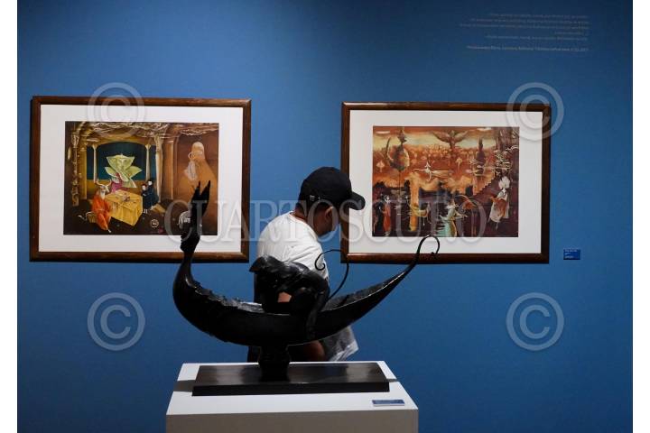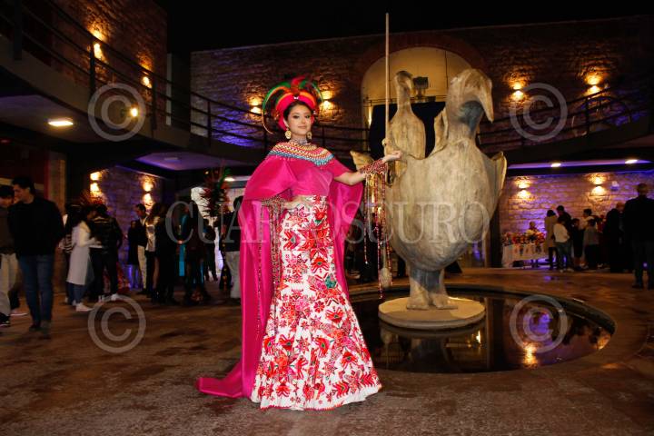 SAN LUIS POTOSÍ, SAN LUIS POTOSÍ. 27SEPTIEMBRE2024.- En el Museo Leonora Carrington que se encuentra en las antiguas instalaciones de la antigua penitenciaría de San Luis Potosí se llevó a cabo una noche de museo llamada “México surrealista” con la presentación de una pasarela con vestidos diseñados con bordados huastecos, donde se da la fusión de arte, moda y raíces. En este museo se exhiben algunas obras más destacadas de Leonora Carrington quien fue una figura clave del surrealismo. FOTO: MARCELO PALACIOS/CUARTOSCURO.COM