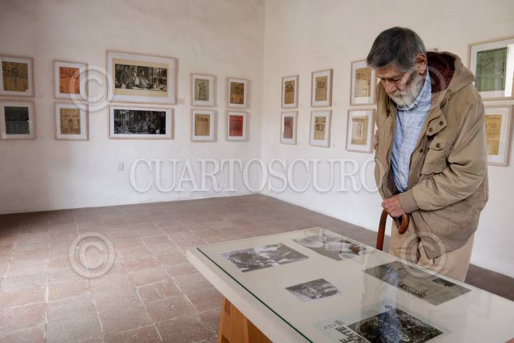 CIUDAD DE MÉXICO, 14AGOSTO2025.- Un hombre toma fotografías durante el recorrido a medios de comunicación de la exposición "Leopoldo Méndez. De la estampa al mural en movimiento" en el Museo Nacional de la Estampa, la cual estará abierta al público a partir del 16 de agosto. FOTO: GRACIELA LÓPEZ/CUARTOSCURO.COM