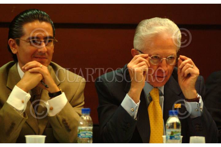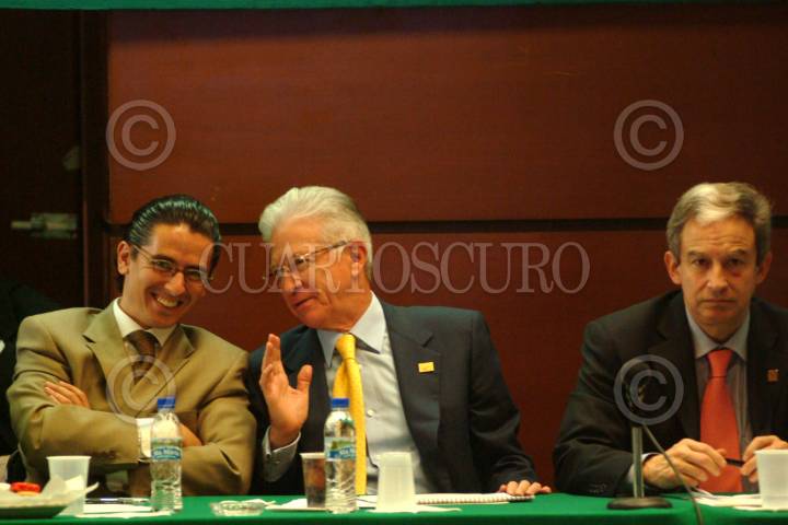 MEXICO, D.F. 22OCTUBRE2004.- Raúl Muñoz Leos, director de PEMEX, se reunió la comisión de presupuesto y cuenta pública de la cámara de diputados para hablar sobre el presupuesto destinado a la institución que precede. Salazar Díaz Soriano, presidente de la comisión de energía, Raúl Muñoz Leos, FOTO: Iván Stephens/CUARTOSCURO.COM