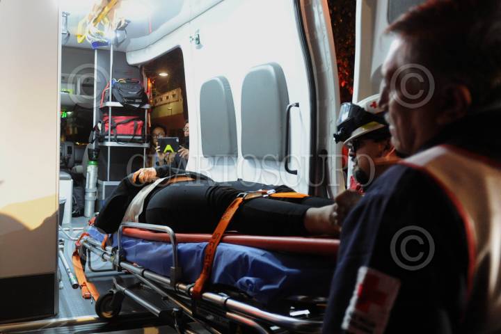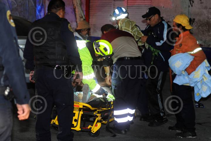 Traslado de una mujer lesionada tras la volcadura de una combi en la autopista México-Puebla al hospital Magdalena de las Salinas en la alcaldía Gustavo A. Madero.