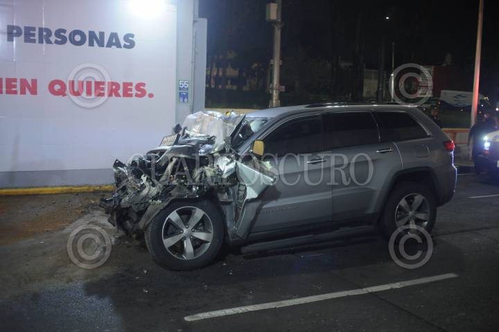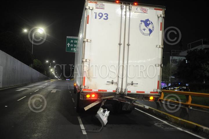 Mujer salva su vida gracias al vehículo blindado que conducía en Churubusco donde impacto contra la parte trasera de un tráiler que circulaba por carriles centrales de esta vialidad.