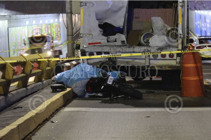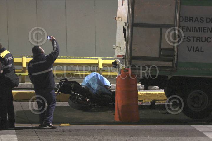 Motociclista pierde la vida y su compañera lesionada, al impactar en Circuito Interior contra camioneta de obras de mantenimiento, que resguardaba la integridad de personas trabajando.