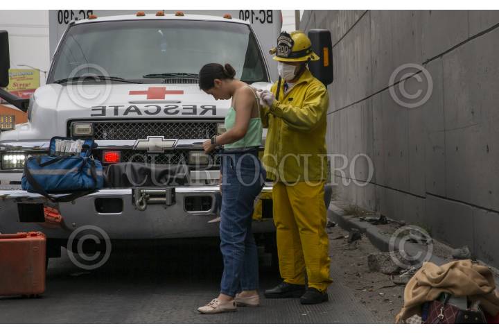 TIJUANA BAJA CALIFORNIA 20AGOSTO2025.- Fuerte accidente vehicular se registró en la avenida Internacional dejando el saldo de dos mujeres de la tercera edad lesionadas. El vehículo en el que viajaban, un Nissan Kicks color blanco, quedó impactado contra una de las estructuras de concreto del viaducto elevado. Paramédicos de la Cruz Roja llegaron al lugar para atender el siniestro. Ambas mujeres sufrieron fracturas como consecuencia del impacto por lo que fueron trasladadas a un hospital cercano. El percance registrado la mañana de este miércoles, generó congestionamiento vehicular en la zona, mientras autoridades realizaban el peritaje correspondiente y retiraban la unidad accidentada. FOTO: CHRIS NOYOLA/ CUARTOSCURO.COM