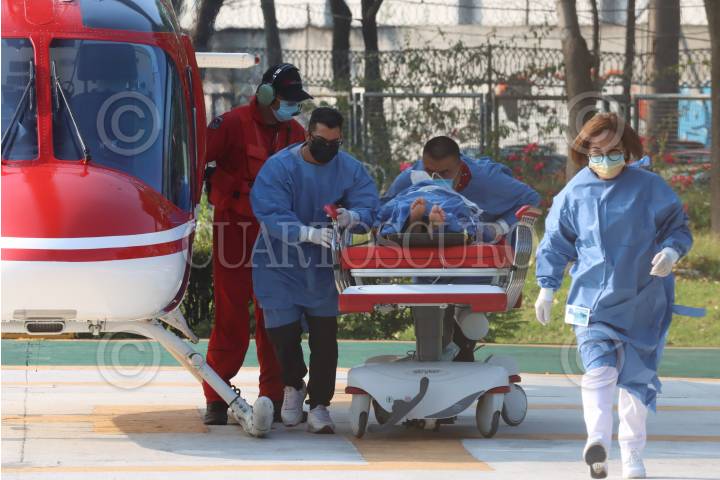 CIUDAD DE MÉXICO., 28ENERO2019.- Una menor de edad fue trasladada en helicóptero con dos impactos de bala, del hospital Belisario Domínguez al helipuerto de Cruz Roja Polanco y de ahí al Hospital Infantil de Legaria, para su atención médica, luego de una balacera en el pueblo de Zapotitla en Tláhuac. FOTO: LUIS CARBAYO /CUARTOSCURO.COM