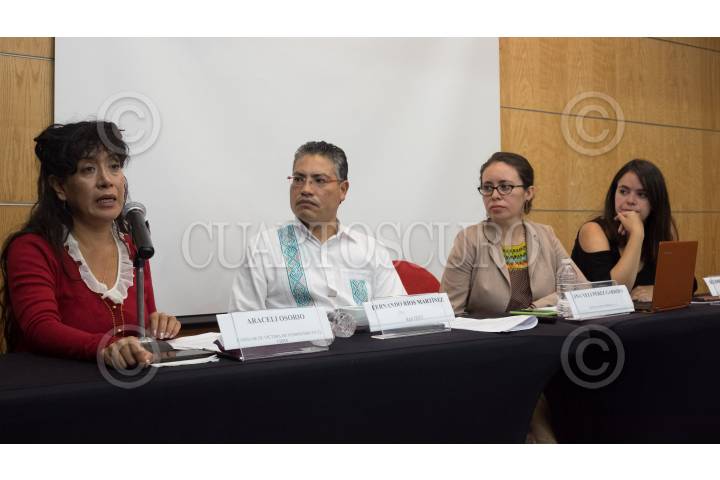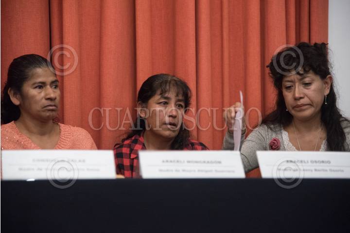 CIUDAD DE MÉXICO, 10JUNIO2019.- Araceli Osorio, mamá de Lesvy Berlín, mujer asesinada en Ciudad Universitaria en 2017; Fernando Ríos Martínez, director de Red Todos los Derechos para Todos y Todas (TDT); Ana Yeli Pérez Garrido, integrante de Justicia Pro Persona y del Observatorio Ciudadano Nacional del Feminicidio (OCNF) y Selene González Luján, coordinadora del área de Incidencia del Centro de Derechos Humanos Fray Francisco de Vitoria, durante la conferencia de prensa de las organizaciones peticionarias de la Alerta de Violencia de Género para las mujeres en la Ciudad de México, ellos acusaron a la Comisión Nacional para Prevenir y Erradicar la Violencia Contra las Mujeres (CONAVIM), Segob y a Claudia Sheinbaum, jefa de Gobierno, de no activar la alerta amarilla por la violencia que viven las mujeres en la capital. FOTO: GRACIELA LÓPEZ /CUARTOSCURO.COM
