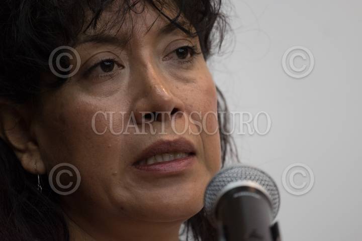 CIUDAD DE MÉXICO, 03AGOSTO2017.- María de la Luz Estrada, coordinadora Ejecutiva del Observatorio Ciudadano Nacional del Feminicidio (OCNF), durante conferencia de prensa, para desmentir la resolución ofrecida por la la Procuraduría General de Justicia de la Ciudad de México (PGJCDMX) en el caso del fallecimiento de la joven Lesvy Berlín Rivera, en Ciudad Universitaria. Durante la conferencia, se mostró un video con recreación de los hechos,en donde se realizaron diversas pruebas para manifestar que no se puede tratar de un suicidio. FOTO: MARIO JASSO /CUARTOSCURO.COM