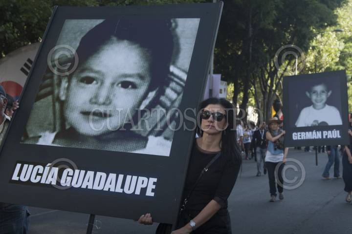 MÉXICO, D.F., 05JUNIO2013.- La actríz, Leticia Huijara carga la imagen de la niña Lucía Guadalupe una de las 49 víctimas del incendio en la Guarderia ABC en la ciudad de Hermosillo Sonora y que el día de hoy cumple 4 años. La PGR abrió nuevas líneas de investigación donde una de ellas que es sostenida por los padres de las víctimas habla de que el incendio fue provocado. la marcha culminará en el Zócalo capitalino con un reclamo de Justicia y no olvido. FOTO: FRANCISCO RODRÍGUEZ / CUARTOSCURO.COM