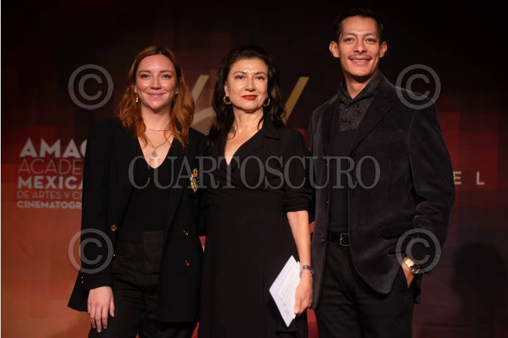 Los actores Regina Blandón y Luis Alberti, junto a Leticia Huijara, actriz y presidenta de la AMACC, durante la presentación de los nominados de la 64 Entrega del Premio Ariel 2022 que organiza la Academia Mexicana de Artes y Ciencias Cinematográficas que se llevará a cabo el próximo 11 de octubre.