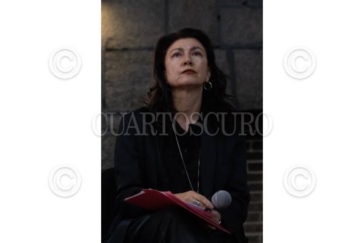 Mónica Lozano, tesorera de la AMACC, durante el anunció de la suspensión de la convocatoria al Premio Ariel 2023 por una crisis financiera que vive la academia.