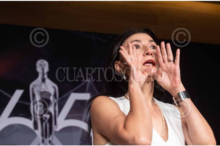 La presidenta de la AMACC, Leticia Huijara durante la conferencia de prensa donde se anunciaron los nominados a la 65 entrega del Premio Ariel, en el Museo Tamayo.
