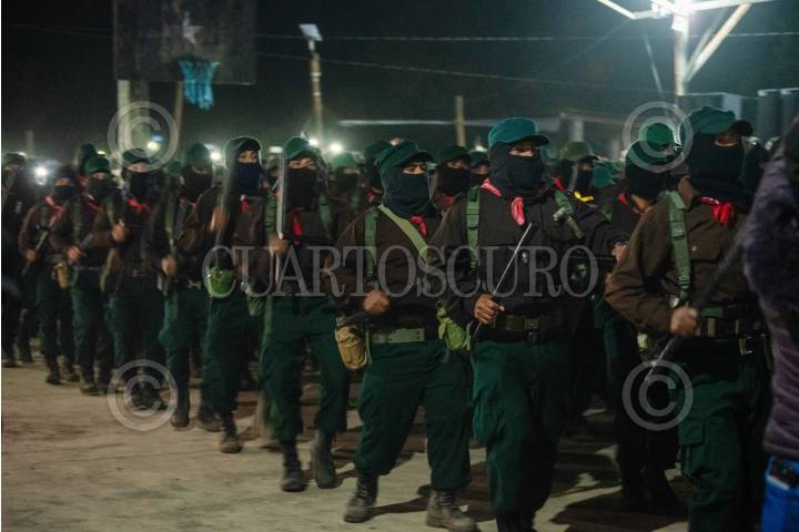OVENTIC, CHIAPAS, 01ENERO2025.- Se llevó a cabo el aniversario 31 del Levantamiento Armado del Ejército Zapatista de Liberación Nacional en el Caracol 2. Durante el discurso la comandancia hizo énfasis en el cuidado de la madre tierra la cual defenderán contra el sistema capitalista. FOTO: ISABEL MATEOS /CUARTOSCURO.COM