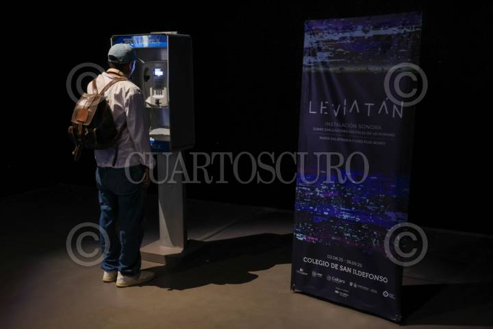 CIUDAD DE MÉXICO, 30 JULIO 2025.- Los artistas María Salafranca y Ciro Puig Bonet presentaron Leviatán, una instalación sonora creada a partir de antiguas casetas telefónicas de Telmex, en las que, al descolgar la bocina, el usuario puede conversar con una inteligencia artificial o chatbot que se alimenta de las interacciones acumuladas. Según los autores, esta IA desarrollará mayor empatía conforme interactúe con más personas, al aprender a reconocer estados de ánimo. La obra fue comentada por Eduardo Vázquez Martín, coordinador ejecutivo del Antiguo Colegio de San Ildefonso. La experiencia inmersiva estará abierta al público del 2 de agosto al 28 de septiembre de 2025, de martes a domingo, en un horario de 11:00 a 17:30 horas, en el Antiguo Colegio de San Ildefonso. FOTO: MOISÉS PABLO / CUARTOSCURO.COM