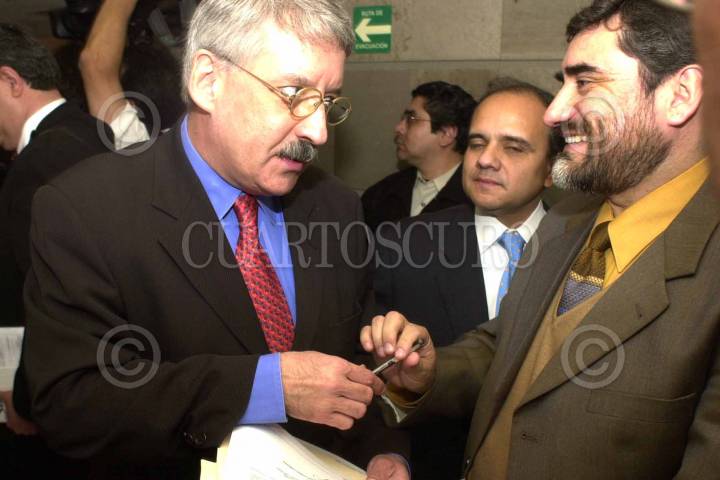 Oscar Levin Coppel del PRI conversa con Martí Batres del PRD, en la instalación de Consejo General del Congreso de la Unión. FOTO: Victoria Valtierra/CUARTOSCURO.COM