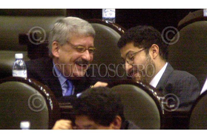 Oscar Levin Coppel del PRI conversa con Martí Batres Guadarrama del PRD, durante la sesión de este día. FOTO: Juan Pablo Zamora/CUARTOSCURO.COM