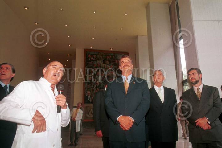 El Instituto Nacional de Cardiología dispondrá del equipo más moderno de diagnóstico, medicina nuclear e incubadoras de alta tecnología, gracias a la donación de las fundaciones "Gonzalo Río Arronte" y Derechos a la Infancia. Asistieron a la ceremonia Julio Frenk, secretario de Salud; Sergio Trevetha, jefe del departamento de Consulta Externa; Vicente Fox, presidente de la República; Gilberto Borja, presidente de la fundación "Gonzalo Río", y Santiago Levy, director del Instituto Mexicano del Seguro Social. FOTO: Oswaldo Ramírez/CUARTOSCURO.COM